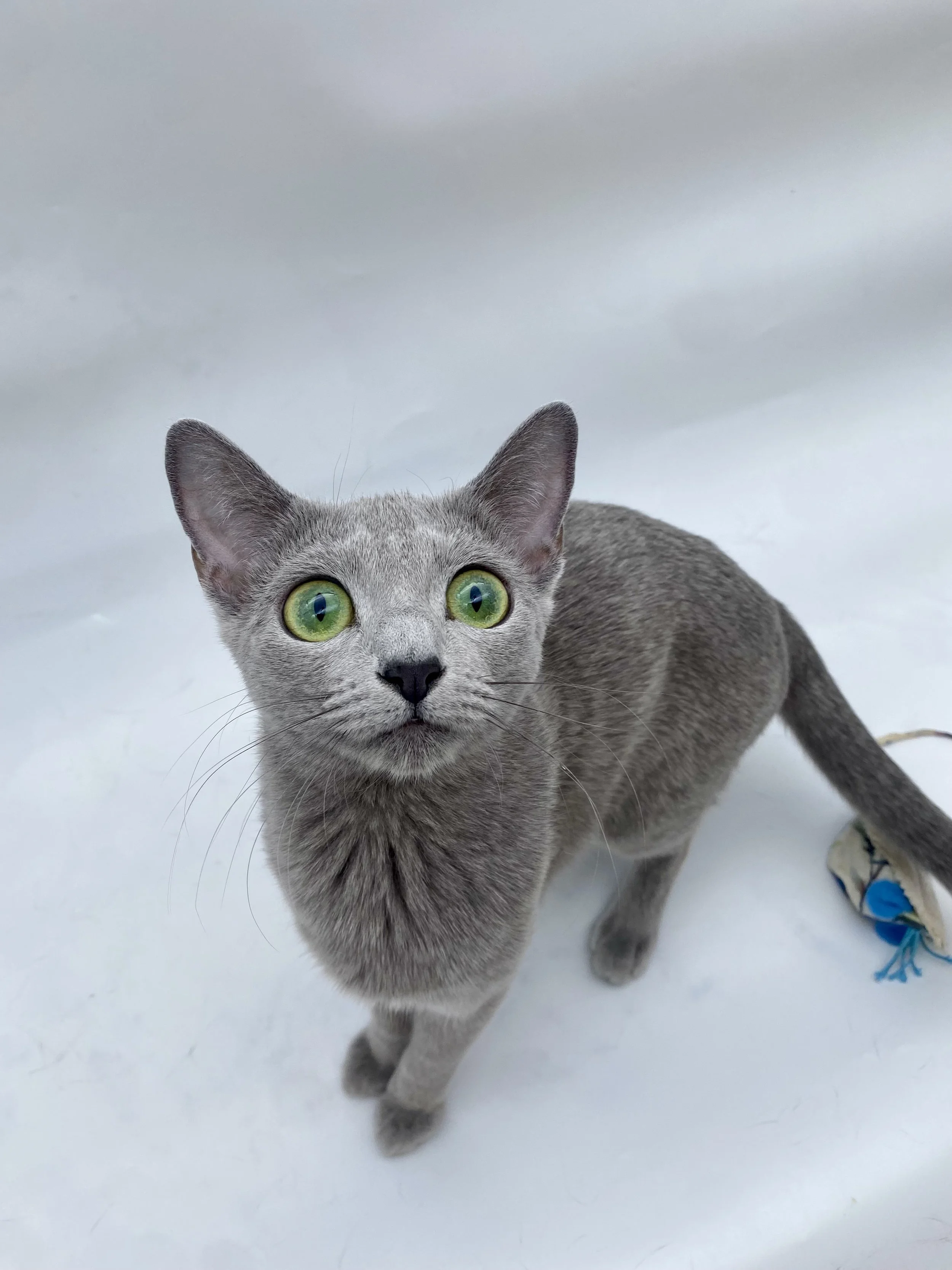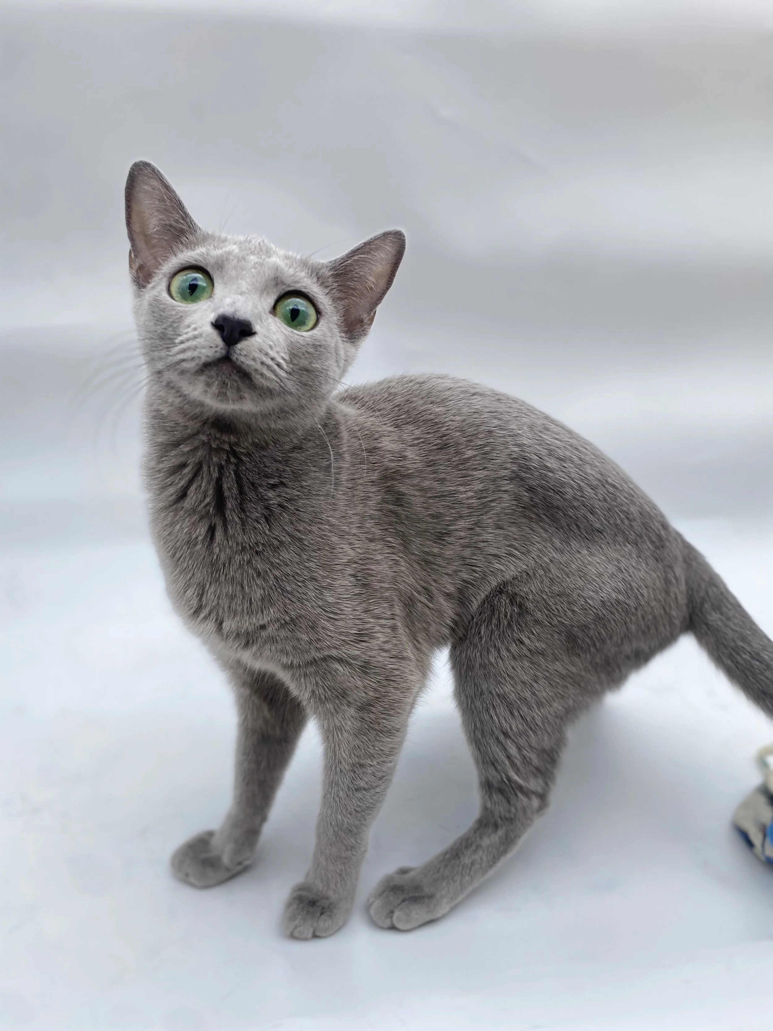 Levana bereichert unsere Zucht in besonderer Weise – nicht nur durch ihre außergewöhnliche Schönheit und ihre feine Körperstruktur, sondern vor allem durch ihr liebevolles, ausgeglichenes Wesen. Sie verkörpert Sanftmut, Intelligenz und Eleganz – all das, was wir an der Russisch-Blau so schätzen und lieben. 🌙