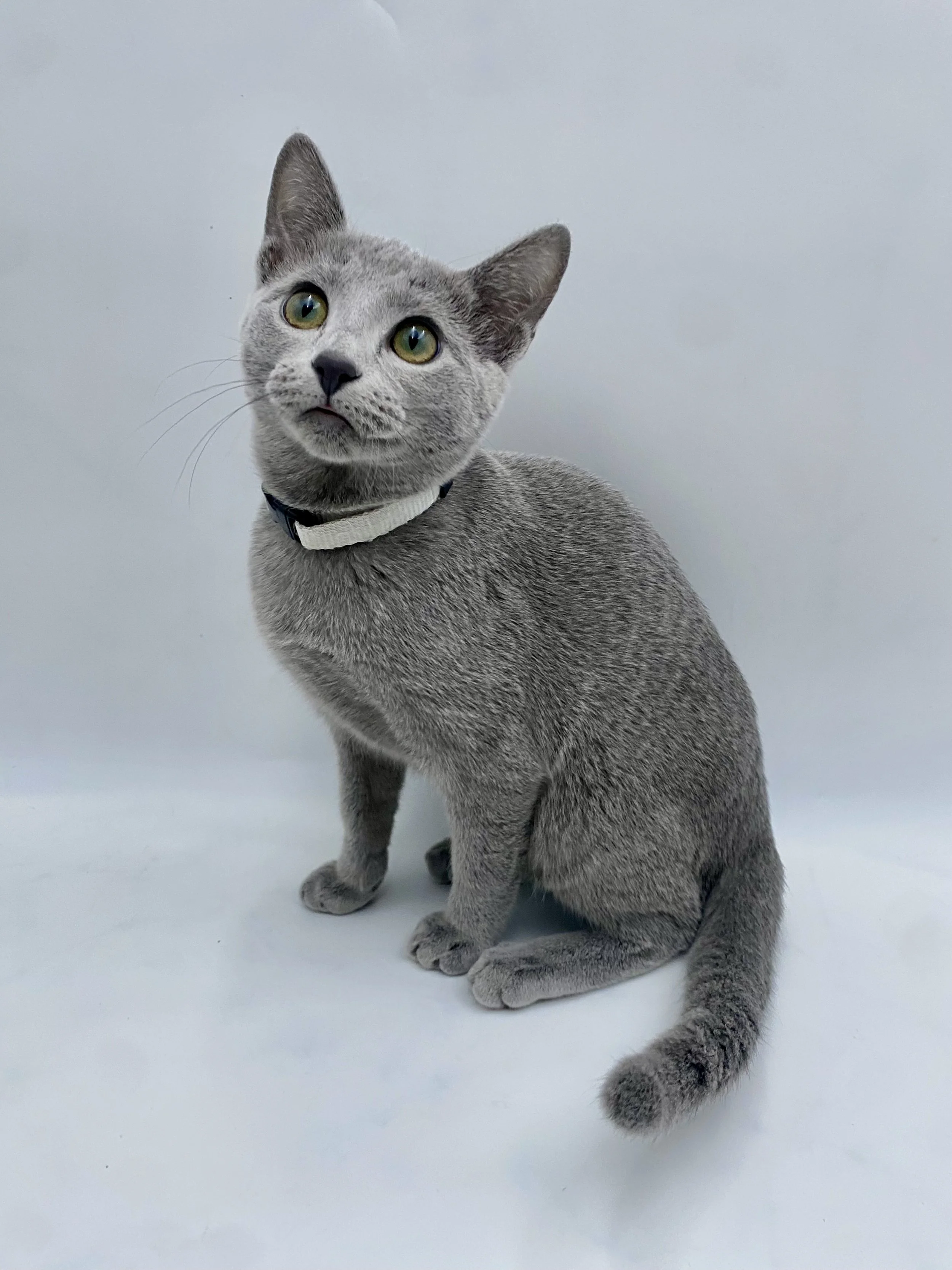 Er verkörpert zu 100 % unser Zuchtziel: die perfekte Kombination aus Eleganz, Ausdruckskraft und einem liebevollen Wesen. Immortal ist unser Aushängeschild – der Inbegriff dessen, was die Russisch-Blau für uns bedeutet.